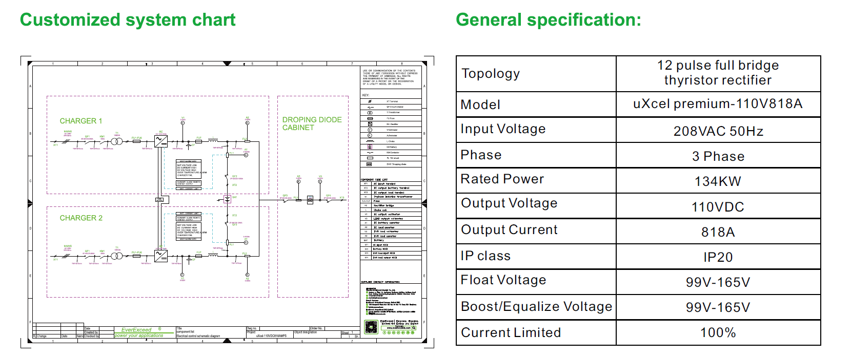 Konstrukcja 12-pulsowa: 12-pulsowy prostownik tyrystorowy znacząco poprawia jakość zasilania i sprawność systemu. Dzięki współczynnikowi mocy ≥0,9 i prądowi harmonicznemu <10%, zawiera filtr LC, który utrzymuje napięcie tętnień <2% (bez podłączonego akumulatora), zapewniając stabilne wyjście prądu stałego.