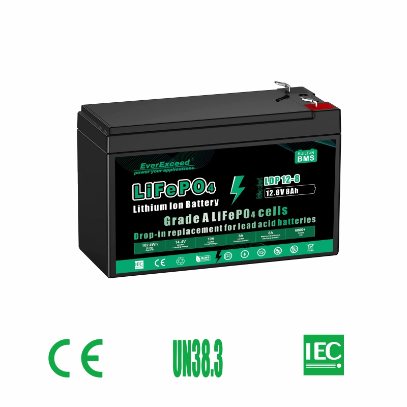 Szerokie zastosowanie: akumulator litowy EverExceed 12 V 8 Ah jest szeroko stosowany w wielu zastosowaniach, takich jak pojazdy kempingowe, zasilacze UPS, kempingi, echosondy, zasilacze awaryjne, wózki dziecięce, kosiarki do trawy, panele słoneczne, silniki trollingowe, oświetlenie awaryjne, systemy poza siecią, sieci hybrydowe i wiele innych.
