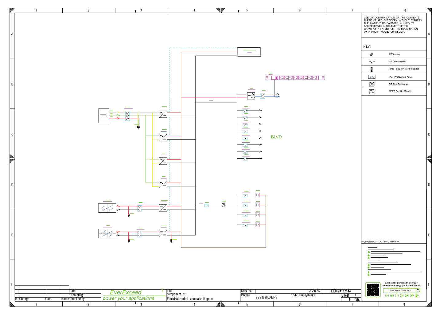 Projekt dystrybucji wielozakresowej: Łączy zasilanie prądem stałym, akumulator dwukierunkowy i dystrybucję fotowoltaiczną, wszystkie wyposażone w ochronę przeciwprzepięciową. Dystrybucja prądu stałego obejmuje technologię BLVD, która zapobiega nadmiernemu rozładowaniu akumulatora, wydłużając jego żywotność.