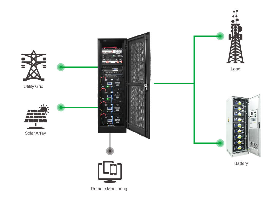 Dostosowane systemy prostowników telekomunikacyjnych serii ESB zostały zaprojektowane w oparciu o koncepcję „zintegrowanego, wielofunkcyjnego systemu zasilania stacji bazowej”. Obejmuje on moduł prostownika, moduł solarny MPPT, falownik, akumulator litowo-jonowy, moduł monitorujący, jednostkę dystrybucji zasilania (PDU) oraz szafę stacji bazowej w ramach jednej platformy.