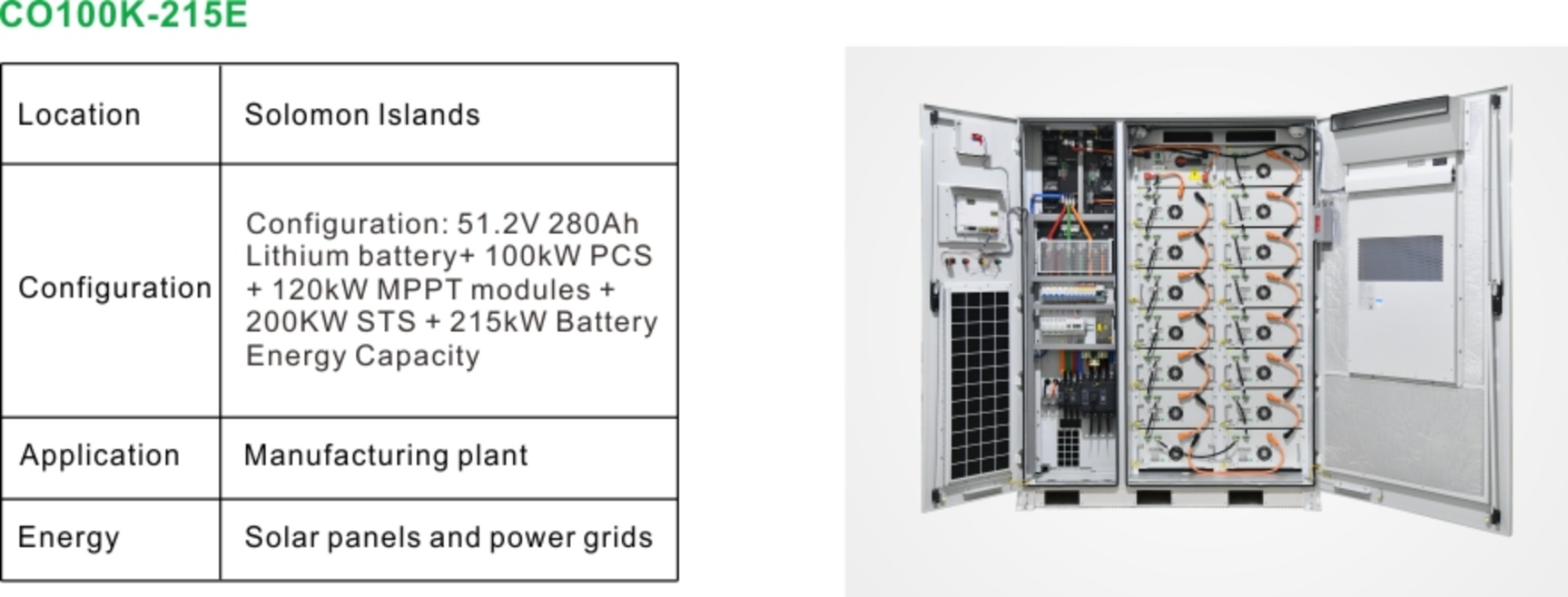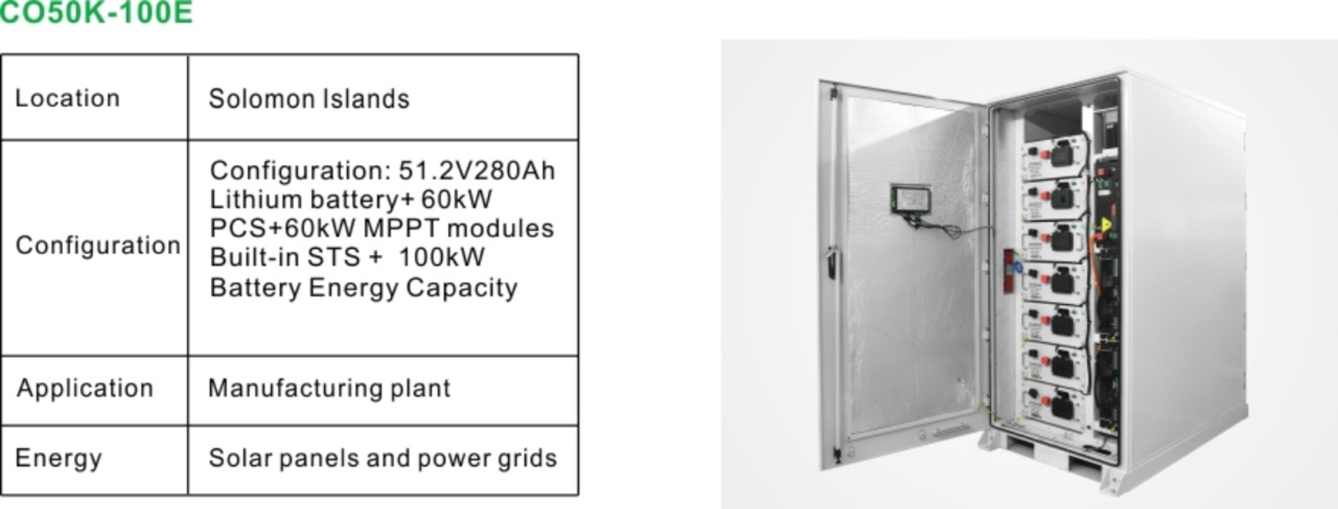 Położone na południowym Pacyfiku Wyspy Salomona w dużej mierze opierają się na importowanym oleju napędowym do produkcji energii, co przekłada się na wysokie koszty energii elektrycznej, zwłaszcza w godzinach szczytu, oraz niestabilną sieć podatną na przerwy w dostawie prądu i wahania napięcia. Lokalne zakłady produkcyjne borykają się z rosnącymi kosztami operacyjnymi, przerwami w produkcji oraz zagrożeniami bezpieczeństwa wynikającymi z tradycyjnych systemów magazynowania energii, takich jak akumulatory kwasowo-ołowiowe, które są podatne na przegrzanie i zwarcia. Aby sprostać tym wyzwaniom, dostarczyliśmy dostosowane do potrzeb klienta komercyjne i przemysłowe rozwiązanie do magazynowania energii, pomagając mu obniżyć koszty energii, ustabilizować zasilanie oraz zwiększyć ogólne bezpieczeństwo i niezawodność.