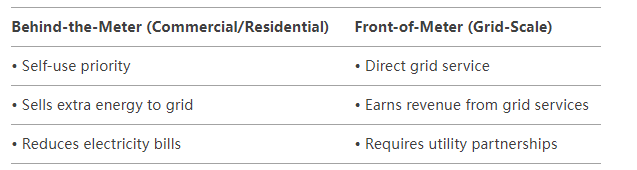 Zrozumienie różnic: komercyjne magazynowanie energii w akumulatorach, magazynowanie w sieci i magazynowanie w budynkach mieszkalnych
