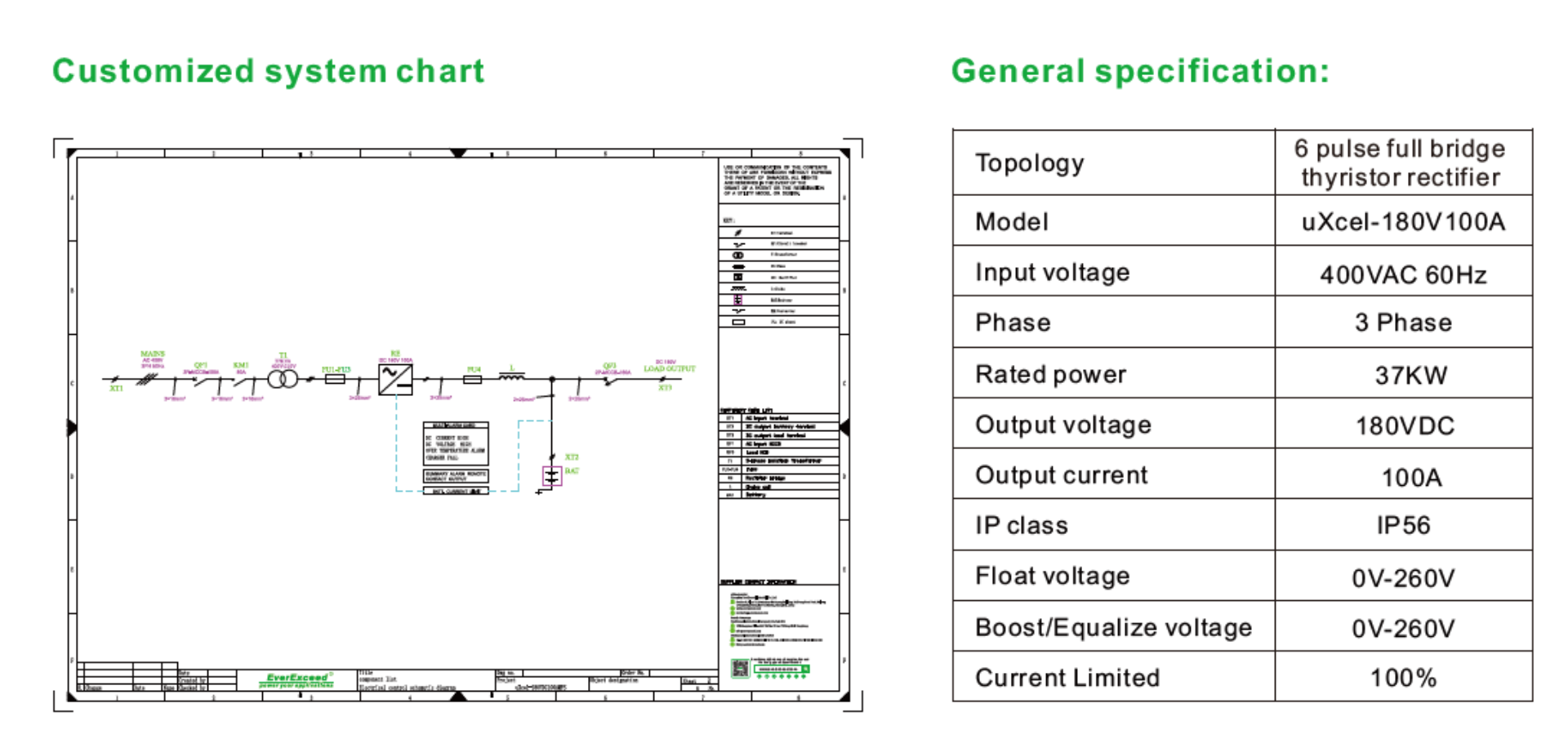 EverExceed jest wiodącym globalnym producentem niestandardowych przemysłowych ładowarek akumulatorów. Opracowaliśmy rozwiązanie dopasowane do tego projektu. Wykorzystując doświadczony zespół inżynierów i wiedzę specjalistyczną w zakresie wymagań klimatu pustynnego, EverExceed dostosował przemysłową ładowarkę akumulatorów uXcel 180V100A do specyficznych potrzeb.